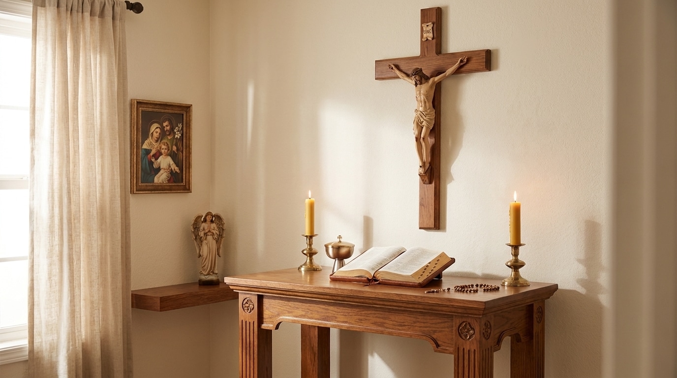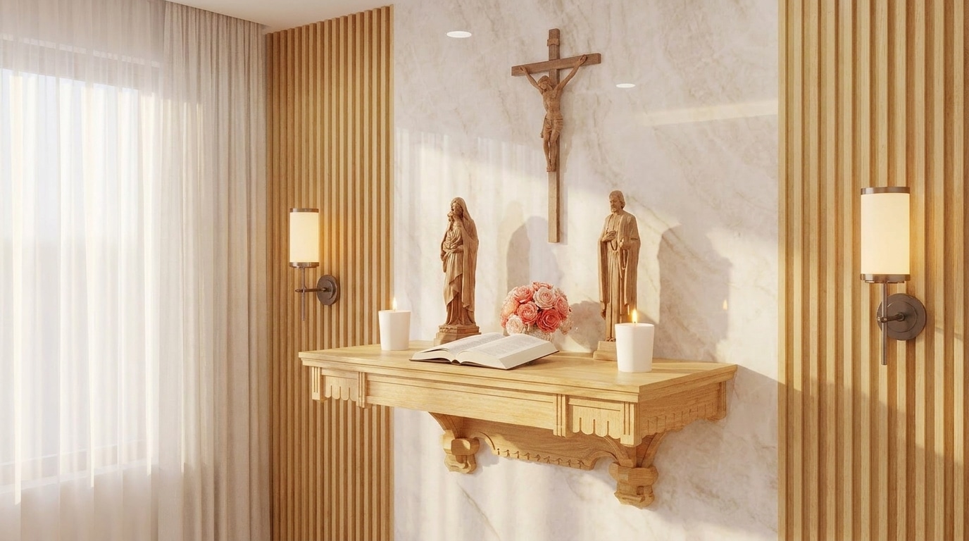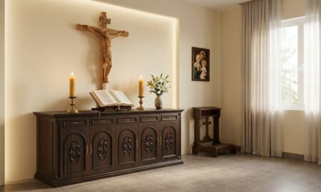 Khám phá ý nghĩa và cách thiết kế bàn thờ Công giáo trong gia đình hiện đại, kết hợp giữa đức tin, sự trang nghiêm và tính thẩm mỹ.