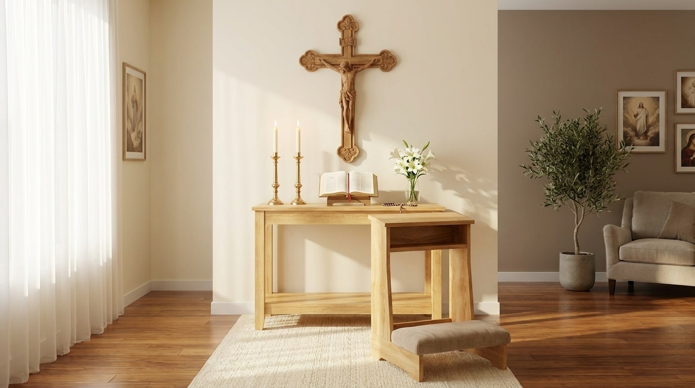 Tìm hiểu ghế quỳ cầu nguyện Công giáo, ý nghĩa thiêng liêng, thiết kế phù hợp và cách lựa chọn cho không gian thờ gia đình.