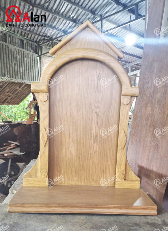 Từ khâu chọn gỗ, sấy khô, gia công, đến sơn phủ và kiểm định cuối cùng – mọi công đoạn đều được kiểm soát nghiêm ngặt. Đội ngũ kỹ thuật của Alan có nhiều năm kinh nghiệm trong chế tác bàn thờ Công giáo, am hiểu sâu sắc về biểu tượng, quy chuẩn và tính thẩm mỹ tôn giáo.